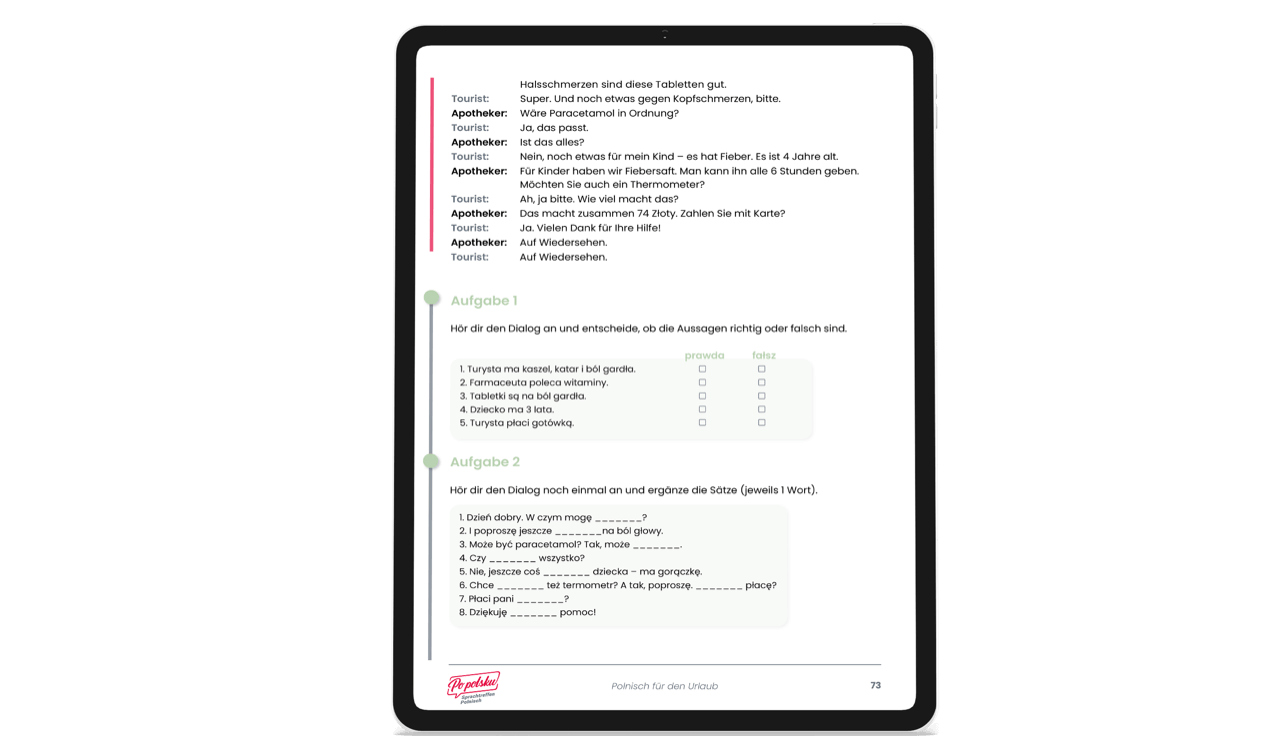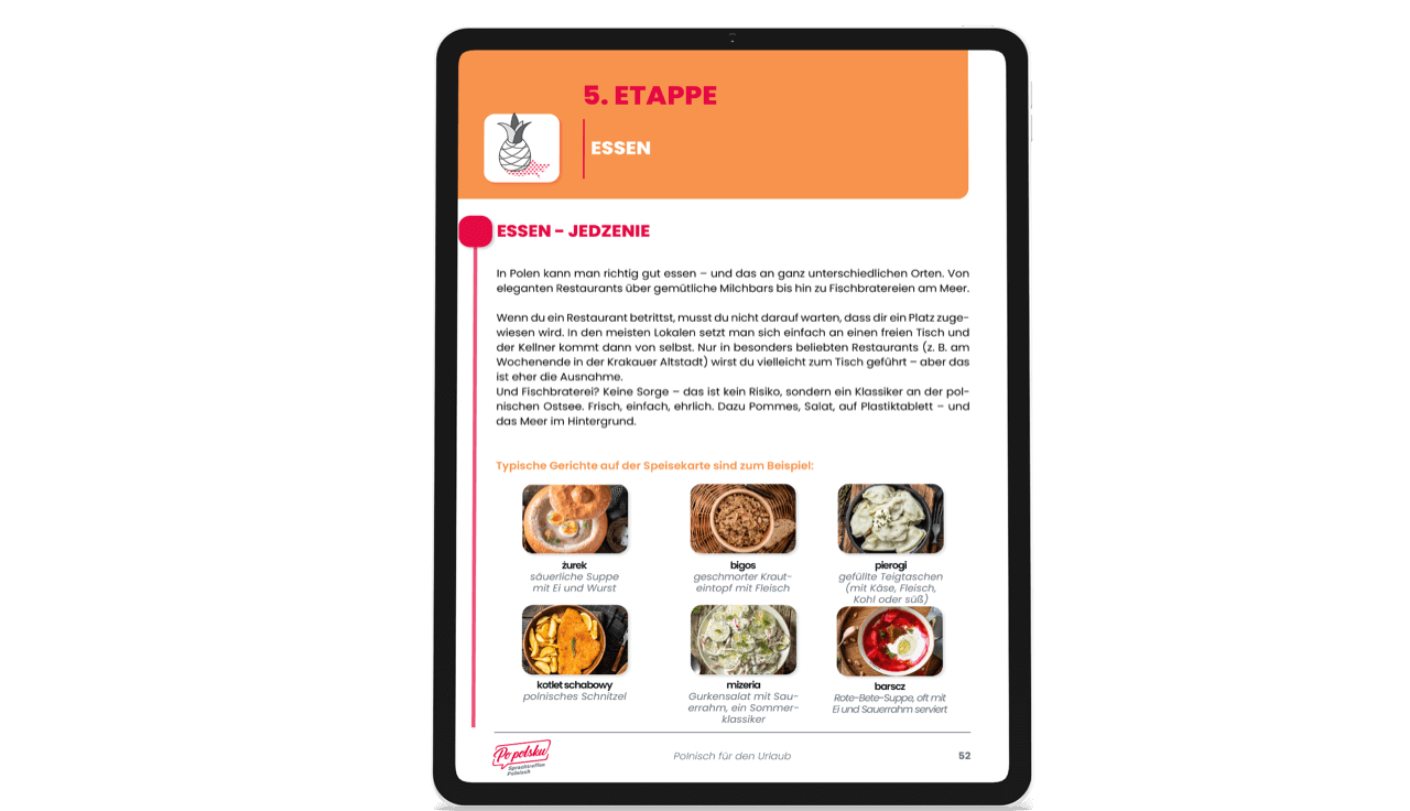 Twój idealny towarzysz podróży do Polski! Ten e-book pomoże Ci podczas wyjazdu porozumiewać się po polsku pewnie i swobodnie: